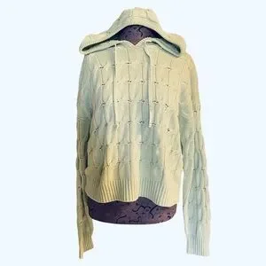 Saturday Sunday Anthropologie Sz L Soft Green Knit Pull Over Hoodie Sweater