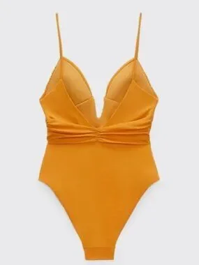 ZARA BRIGHT YELLOW/ORANGE RUCHED SWIMSUIT
