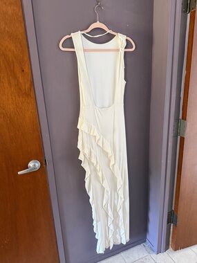 AFRM White High-Low Ruffle One-Shoulder Gown