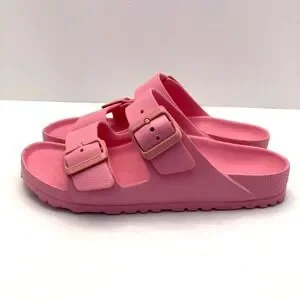 Birkenstock Arizona Essentials Slide Sandals EVA Pink Buckles Womens 7 EU 38