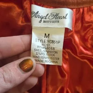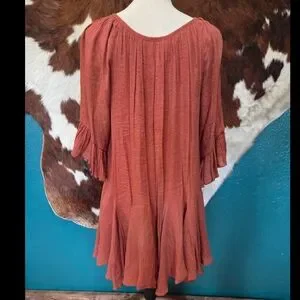 This chic pumpkin tunic offers a relaxed fit and stylish flair. Ideal for both casual and work settings. Lighter in color the 2nd to last picture is the most accurate. Tag says medium the size is not it it 1x!
