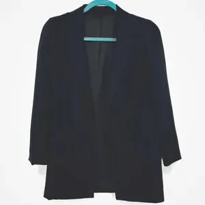AllSaints Womens Aleida Blazer 0 Black Open Front Longline Minimalist Workwear