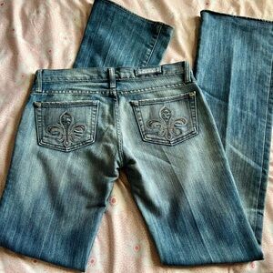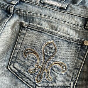 Rock & Republic Low Rise Flare Leg Jeans Fleur-di-lis Embellishment SZ 26 Y2K