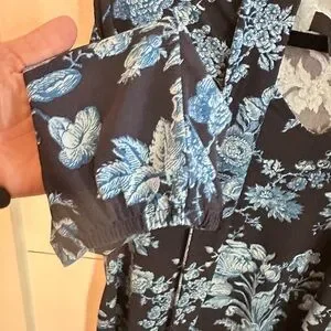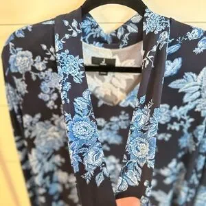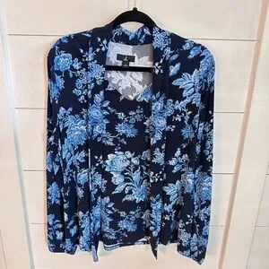 JASON WU L Jersey knit tie navy floral stretch shabby chic business casual top