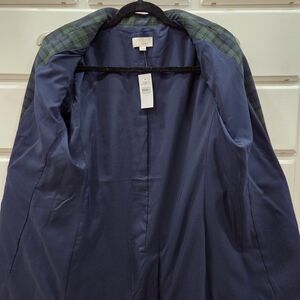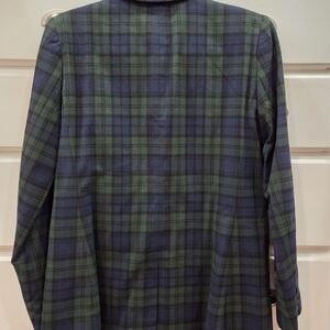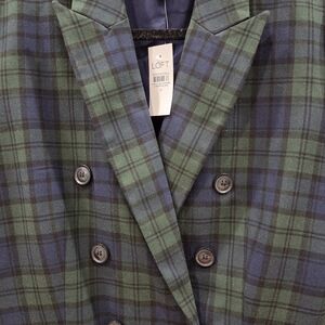 NWT LOFT Green and Navy Plaid Double-Breasted Blazer