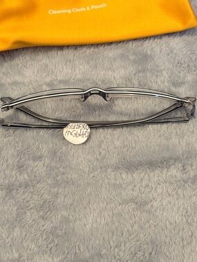 Sleek rectangular frames in glossy black. Thin metal temples with gold-tone accents. Clear lenses with light rim. Branded temple detail visible. Comes with bright cleaning pouch.