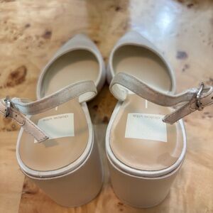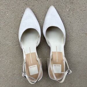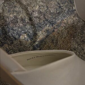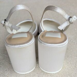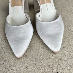 Worn once for my wedding! Size 8.5. Light dirt spots shown in photos on the tip of toe and on the heel.