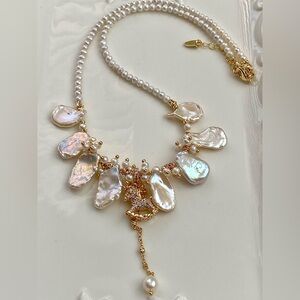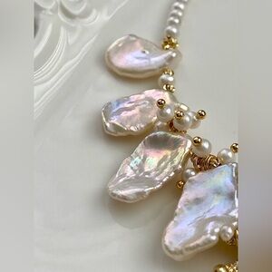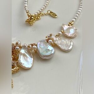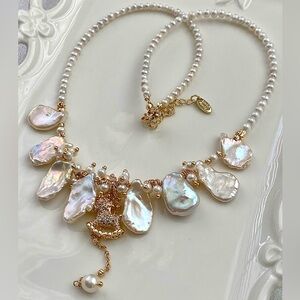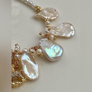 New in box handmade premium metallic keshi pearl and high quality baby pearl necklace with a pony charm.