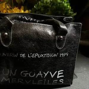 Black Vinyl Tote Bag with White Script