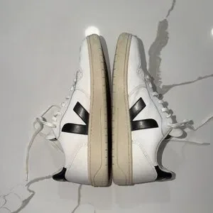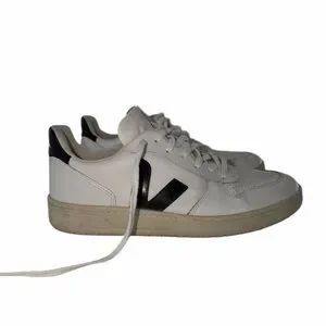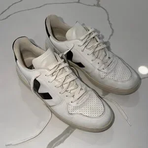Classic low-top Veja sneakers. White leather upper with perforated toe. Padded collar and cushioned sole. In good used conditions. Normal signs of wear as shown.