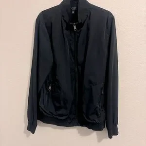 This Nordstrom windbreaker combines style and functionality, featuring a stand-up collar for a refined look. Side zip pockets. Great preowned condition with no rips, spots or major signs of wear.