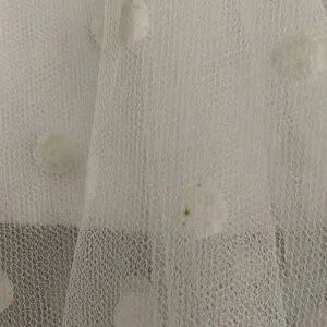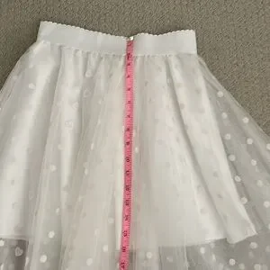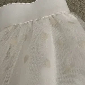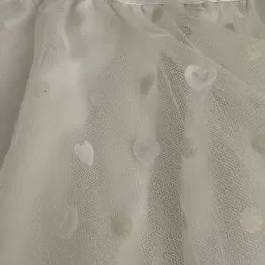 Elegant white tulle skirt with polka dot design and hearts Perfect for special occasions.