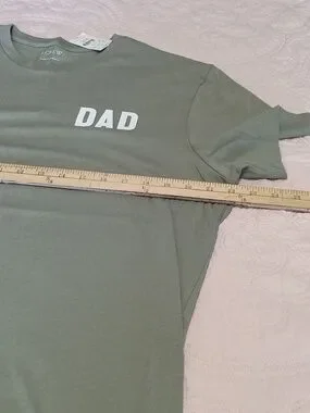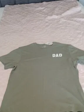 J crew NWT Classic DAD short-sleeve tee in olive green. Soft, breathable fabric for everyday wear. Minimal white DAD chest print adds a clean, modern touch. Easy to pair with jeans or shorts.