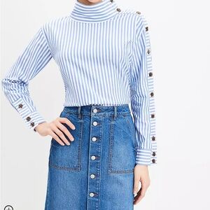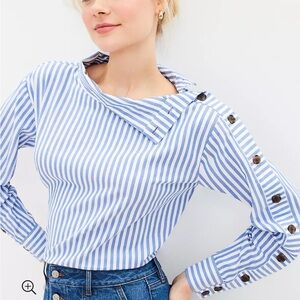 Perfectly Preppy Loft Striped Blouse with Full Button sleeve