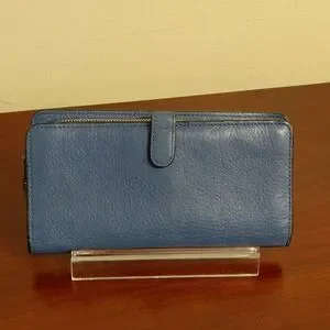 COACH Skinny Wallet in Cobalt Blue Pebbled Leather.