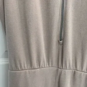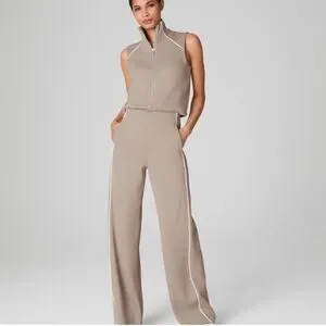SPANX AirEssentials Sleeveless Wide-Leg Jumpsuit in Taupe with White Piping
