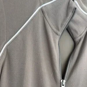 Sleek sleeveless jumpsuit with a partial zip neckline. Wide-leg silhouette with side pockets. Contrast white piping along shoulders and pant seams. Soft stretch fabric for comfort and movement.