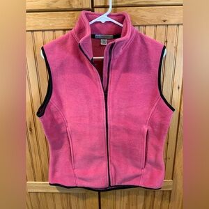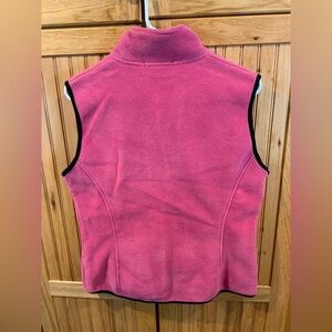 Soft fleece vest with a vibrant pink hue. Ideal for layering. Features a full zip front.
