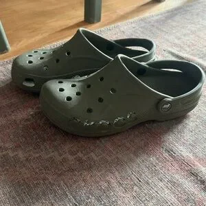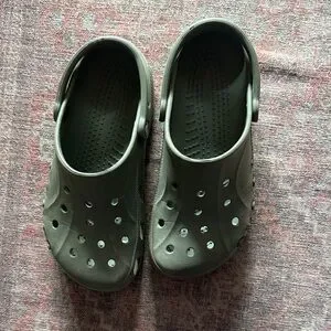 Comfortable slip-on clog by CROCS. Lightweight, ventilated design with heel strap. Easy to clean and breathable. Ideal for casual wear and outdoor use.