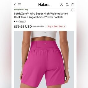 Halara Hot Pink Shorts Super High Waisted 2-in-1 Yoga Shorts 7" Pockets NWT