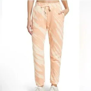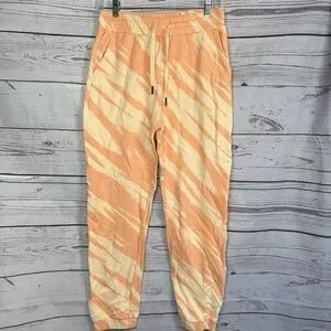 Comfortable joggers with a stylish peach and beige pattern. Ideal for casual wear.