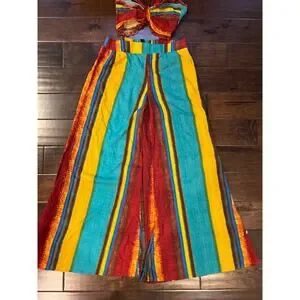 Cider Wild West Boho multi-colored wide leg bell bottom and tube top set