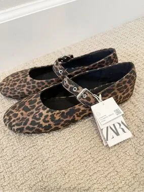 ZARA Leopard Printed Ballet Flats NWT Silver Hardware