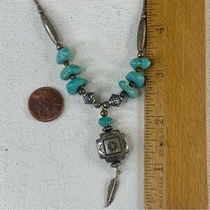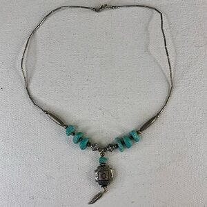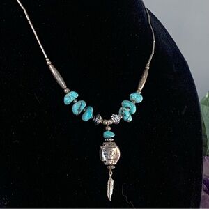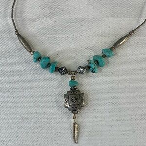 Southwestern Faux Turquoise Native American Style Etched Silver Tone Necklace