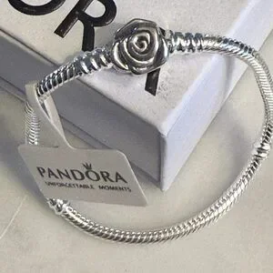 Authentic Pandora, SIZE 22CM, Silver Rose Clasp Chain Bracelet