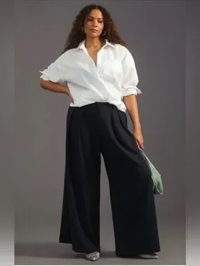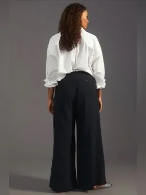 ANTHROPOLOGIE MAEVE Pleated Trousers Wide-Leg Black Pants 10