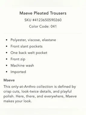 Great pair of wide leg trousers by MAEVE! Pleats, side pockets, Front zip.