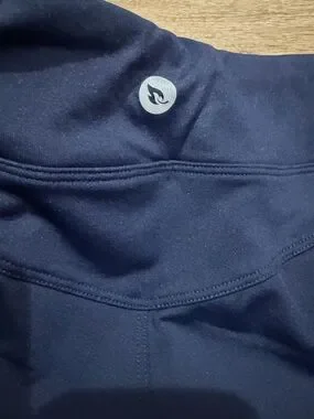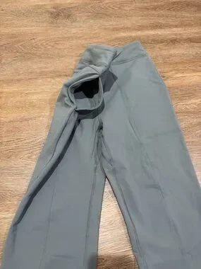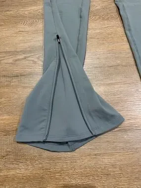 Navy and Gray boot-cut pants with zip hem for straight or flared styles. High-rise waistband for a secure fit. Stretch fabric offers full mobility. Side pockets provide easy storage. New with tags. Navy blue and Dark Gray. 28 waist, 31 inseam.