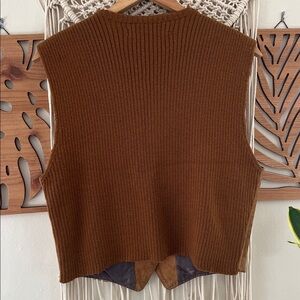 Soft brown suede vest with a clean V-neck silhouette. Button-front closure for classic styling. Two front welt pockets for subtle detail. Sleeveless design layers easily over tops.