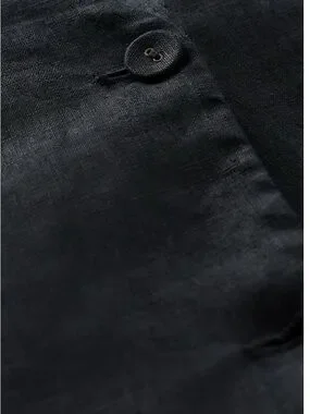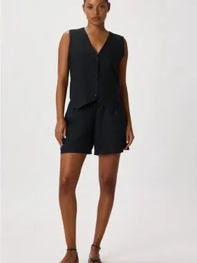 Quince European Sleeveless V-Neck Button Front Black Linen Vest