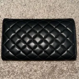 Black leather. Gold hardware. Brand new.