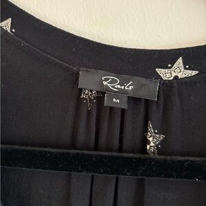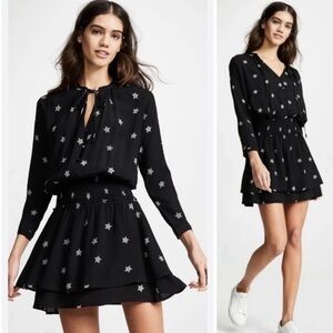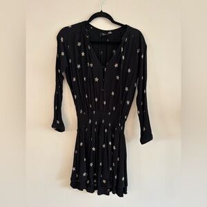 Rails Jasmine Black Mini Star Dress, Size M, flowy, long sleeve