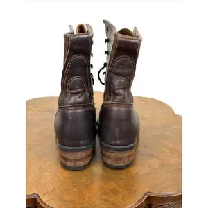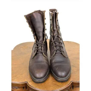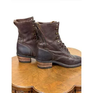 Description: Lace up with hooks, stacked heel, Vibram outsole boot. Leather.