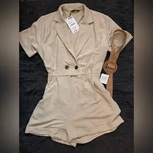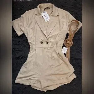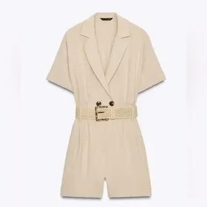 Zara Beige Short Sleeve Blazer Romper
