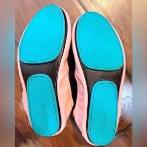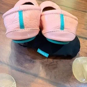Beautiful brand new Tieks. Includes the clear gel inserts and black carry tote and baggie as shown. Insoles are clean and unworn, only the gels arch support has turned the insole dark from being adhered.