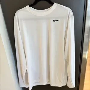 Stay stylish with this Nike long sleeve tee. Ideal for casual wear or workouts. Features a sleek design. Used but looks good