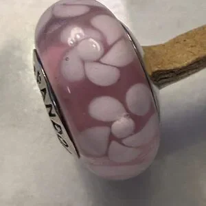 Authentic Pandora Retired White Pedal Floral Murano Glass Charm