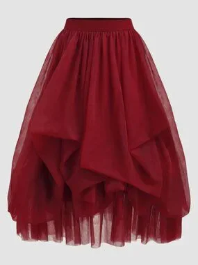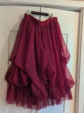 NWT Cider Voluminous Mesh Mid Rise Ruffle Tulle Maxi Skirt in Wine red Size L. Zipper in back with no stretch.