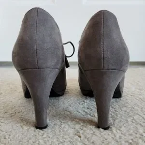 Taupe Suede Lace-Up Womens Heeled Pumps