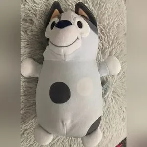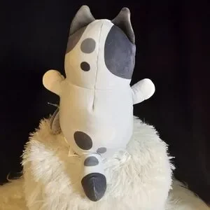 Soft Squishmallows husky plush. Gray and white color pattern with embroidered facial details. Small round spots and floppy ears. Brand tag NOT attached. Perfect collectible cuddle toy. Gently played with.