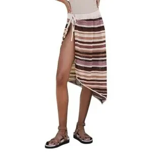 Maeve Anthropologie Knit Wrap Midi Skirt Striped Tie Waist Boho NWT