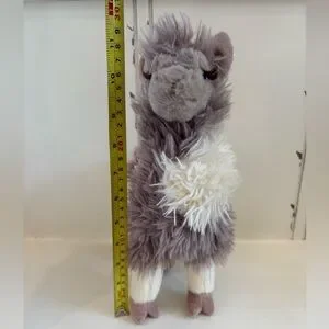 Grey and white fluffy llama/Alpaca plush by Douglas. Lifelike details like long eyelashes.