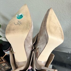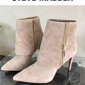 Steve Madden Taupe Suede Pointed Toe Ankle Boots with Gold Zipper