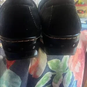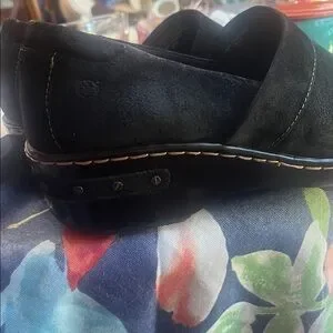 Born Womens Size 7 Bailie Black Suede Leather Casual Slip On Closed Back Clogs