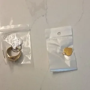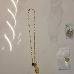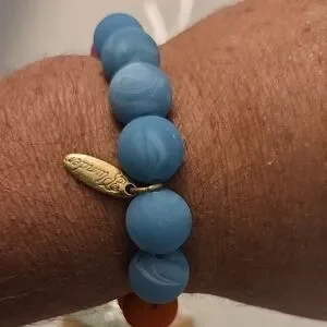 6 Items Plunder Gold Tone Charm Necklace with Blue and Orange Beaded Bracelet