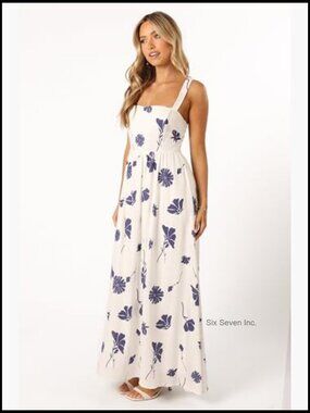 Viscose Linen Maxi Dress with Square Neck and Lace Back